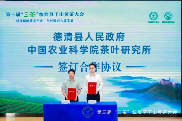 现场,德清县人民政府与中国农业科学院茶叶研究所举行了签约仪式,发布了由中国茶叶学会立项发布的《莫干黄茶》团体标准,并牵头全国黄茶主产区发布“黄茶令”。